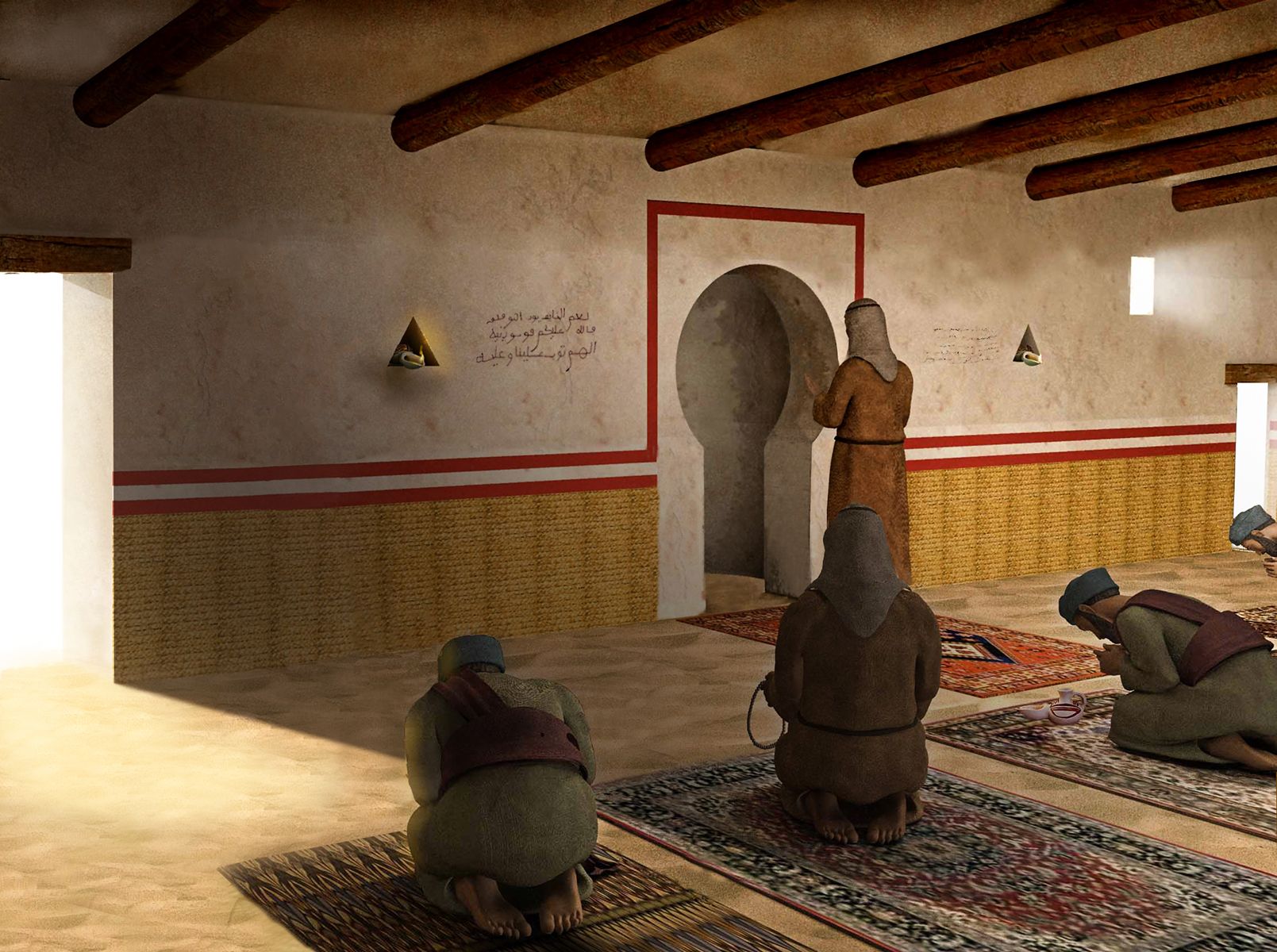 Tanto las celdas oratorio como la mezquita tienen una estructura similar, aunque la funcionalidad y capacidad de las estancias varíe. Las celdas oratorio tienen una estructura rectangular de no más de 8 metros de longitud por 3 de ancho, con una puerta de acceso y con su respectivo muro de la quibla y su mihrab. La quibla sirve para orientar correctamente la oración de los fieles, y el mihrab es una pequeña capilla abovedada en saliente, lugar desde donde el Imán dirige el rito y que, además de tener una potente carga espiritual para los musulmanes, ha servido tradicionalmente para ampliar la voz del oficiante.